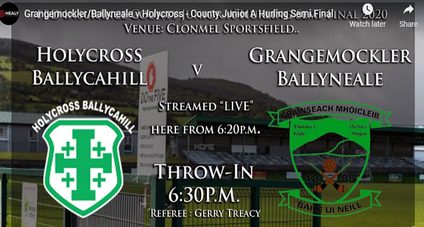 County Junior A Hurling Semi-Final Live Stream link, Grangemockler / Ballyneale V Holycross Ballycahill @6:30pm 26/6/21