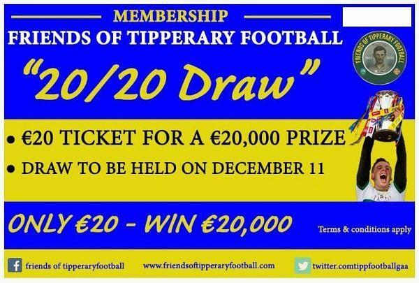 The Friends of Tipperary Football are giving you the chance to win €20,000 in our 20/20 draw. That’s €20,000 for just €20.