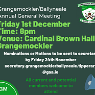 Our GAA club Annual General Meeting will take place on Friday 1st December at 8pm in Cardinal ...